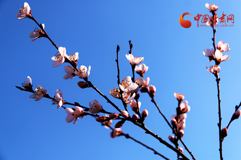 在五龙山,漫山桃花竞相开放,香气袭人,汇成了花的海洋,粉红的桃花在春风里绽放,在春日的阳光下煞是好看,远远望去粉的娇柔婀娜,层层叠叠,瓣瓣舒展。一列火车疾驰而过,满眼的美景吸引过往游客驻足拍照留念,感受大自然给予这座小城的美好馈赠。